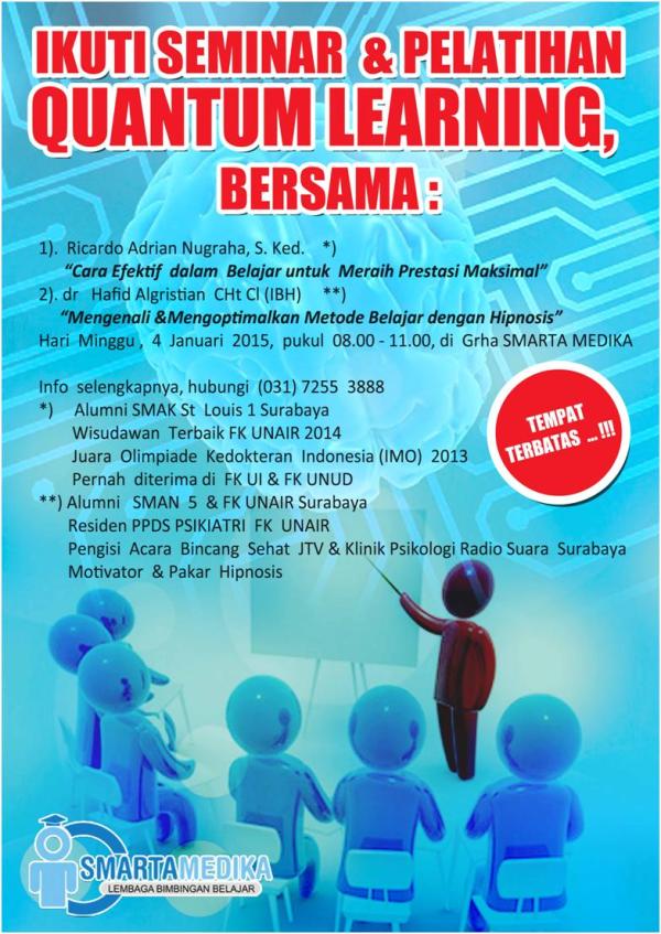 December 20, 2014 SEMINAR & PELATIHAN QUANTUM LEARNING Leave a comment Share this: Click to share on X (Opens in new window) X Click to share on Facebook (Opens in new window) Facebook Like Loading... Related Posted by arismarta1 in Event