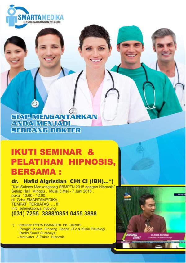 March 25, 2015 SEMINAR & PELATIHAN HIPNOSIS UNTUK PERSIAPAN SBMPTN 2015 Leave a comment Share this: Click to share on X (Opens in new window) X Click to share on Facebook (Opens in new window) Facebook Like Loading... Related Posted by arismarta1 in Event